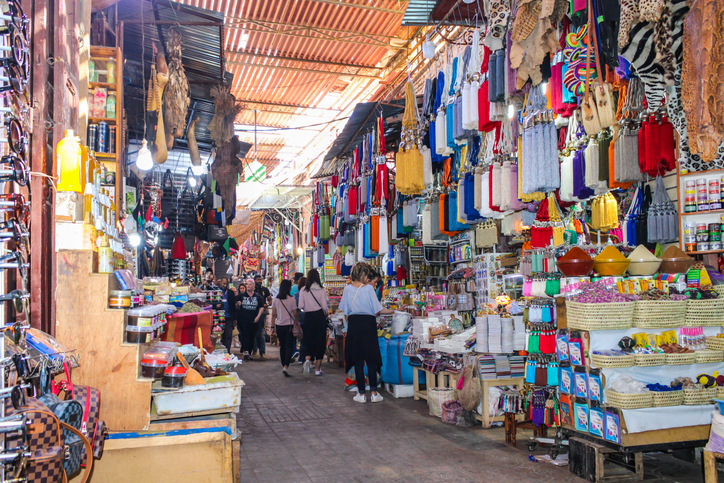 Ingen plats fångar stadens själ som soukerna. Det är de täckta marknadsgatorna där allt från handknutna mattor och smycken till kryddor, skinnväskor och färggranna keramikkrukor säljs i ett myllrande kaos. Här prutar man, ler, provar, doftar och samtalar – och hittar kanske det där du inte visste att du letade efter.